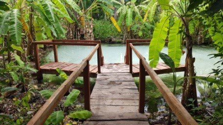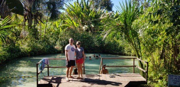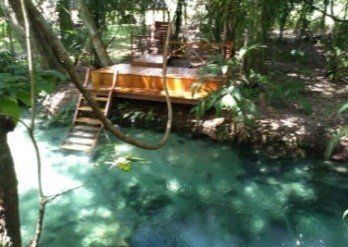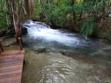 É uma nascente com um fluxo de água tão forte que não se consegue afundar, você fica flutuando, sensação única.